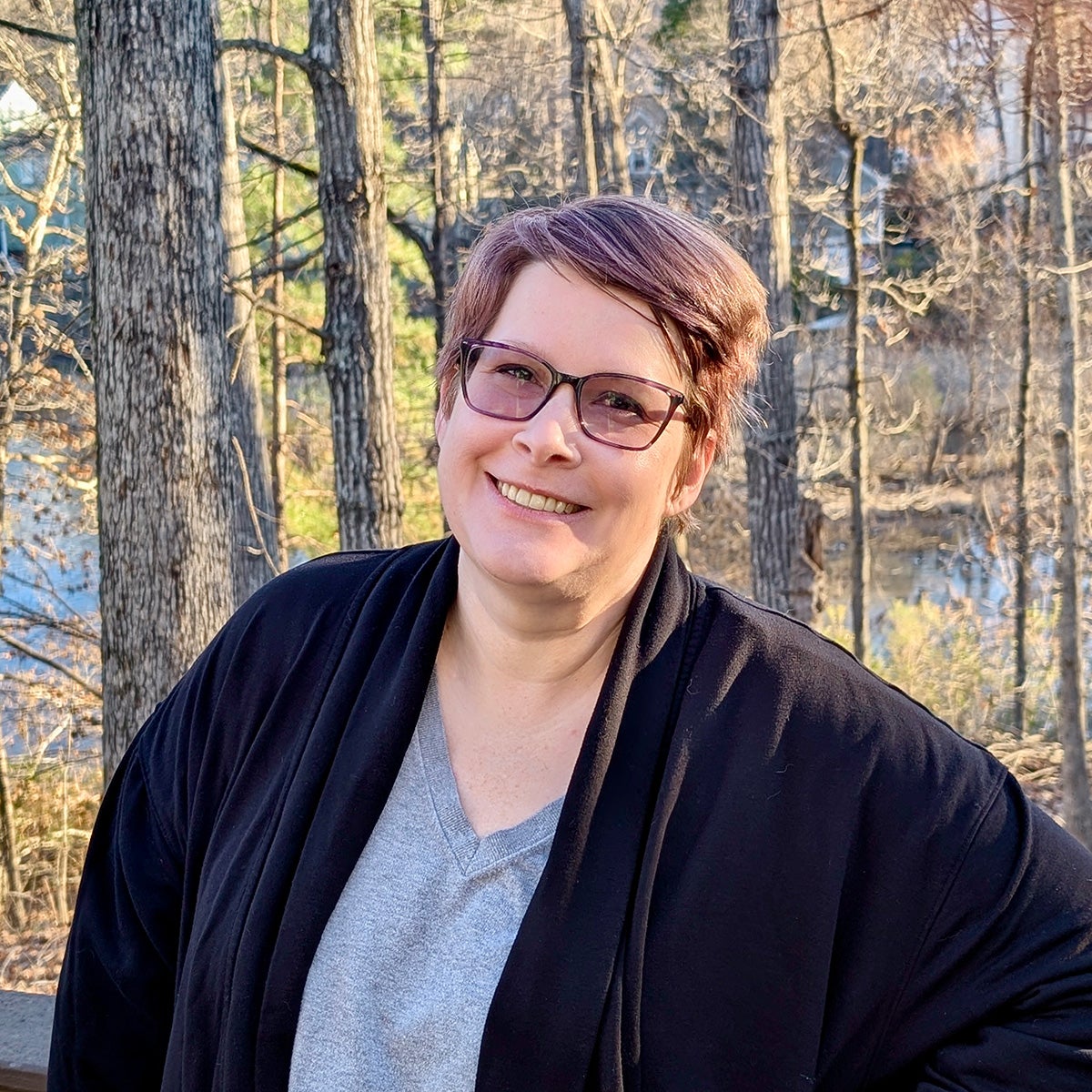She lives in Cary, NC, with her husband, Mike, and their very spoiled 9-year-old rescue dog, Hanzo.