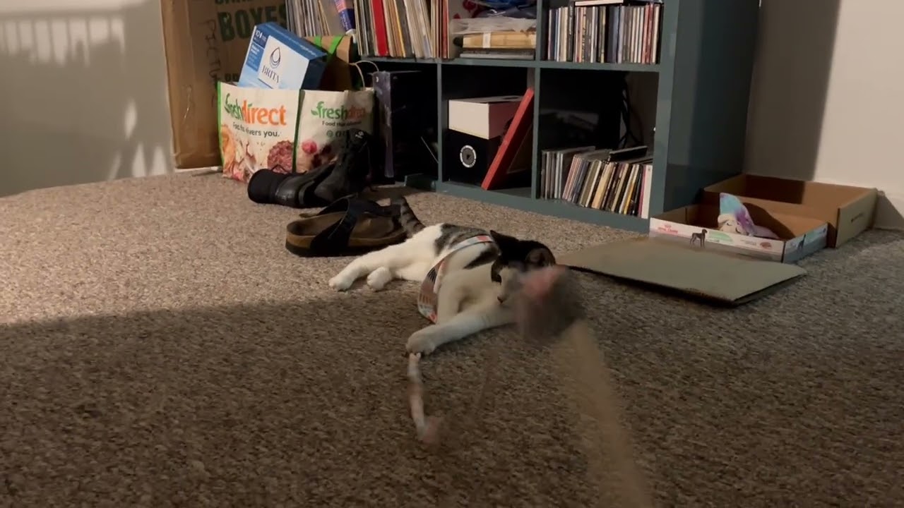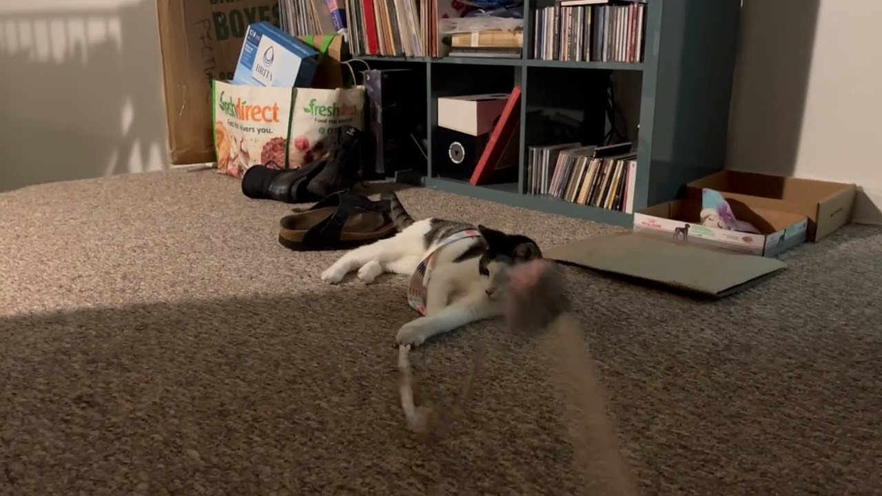 Her foster said "She was very shy in the beginning, but still curious about her new environment! About 5 days in, she got settled and started sleeping on the bed with me and being more playful and talkative :) She is a sweet girl who is not a lap cat but loves head scratches and being brushed! She knows what she likes (food, how clean her litter box needs to be, when she wants to say hello to her human) and she has just been the sweetest, most gentle girl! She is so gentle and sweet! A calming energy to be around. She is a good balance of being an independent cat but also down for kisses and hugs!!"