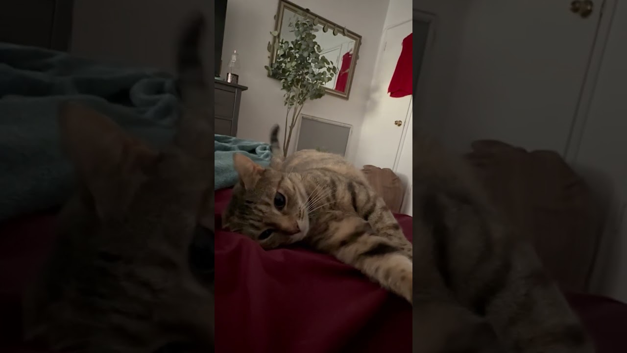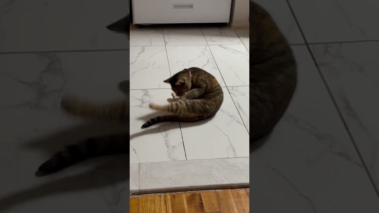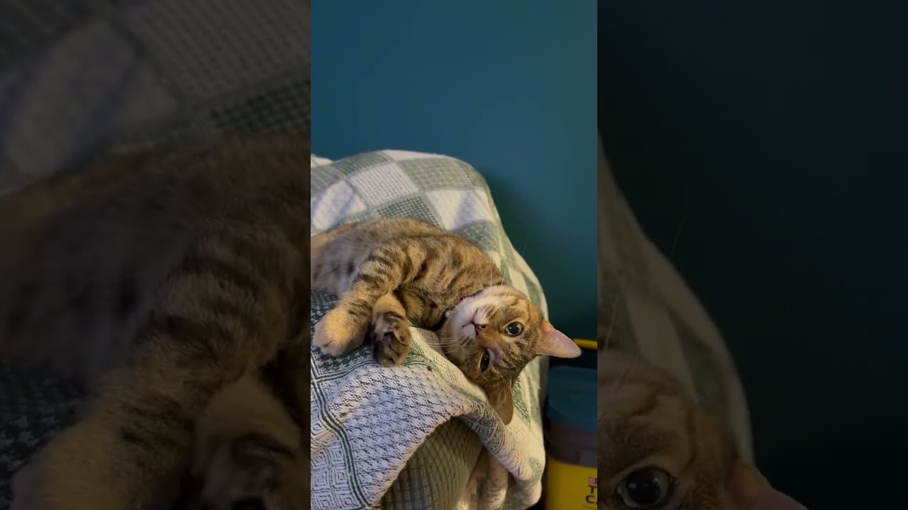 Her foster says "I love how curious Molly is. She doesn’t seem scared of exploring her surroundings. She was quite cuddly from the get go. But as days went by she became more and more cuddly and would come sleep next to me or on top of me and cuddle up on the couch. She is soo lovable and cuddly. She will come poke her very cold nose on you to cuddle up to you. And she will be very excited for play and will also self play. Molly started waking us up by making biscuits on us in the morning. It’s the cutest thing!. Molly has great potential to be the best cat you ever have! She’s a great companion. She’s sweet, loyal, quirky, and will always surprise you each day.". She is an intelligent and curious girl. She has some very cute and silly behaviors like chasing her own tail and sleeping almost upside down. She is so different from when she first arrived! In the best way possible, she’s made so much progress from being quite easily frightened and on high alert at all times. Now she’s comfortable, and has adjusted well with new surroundings and people. She just needs time and patience and she’ll become everything you’d want in a cat! She’s playful, energetic, talkative, yet loves to nap and window watch! She’s so curious and goofy. You’ll always find yourself laughing when she’s chasing her own tail in circles or ending up in the funniest positions. She loves to explore her space and doesn’t seem scared of anything! Lately, she started exploring the bathroom and is super curious about water. Molly can thrive in a single cat household or even a home with a few cats!"
