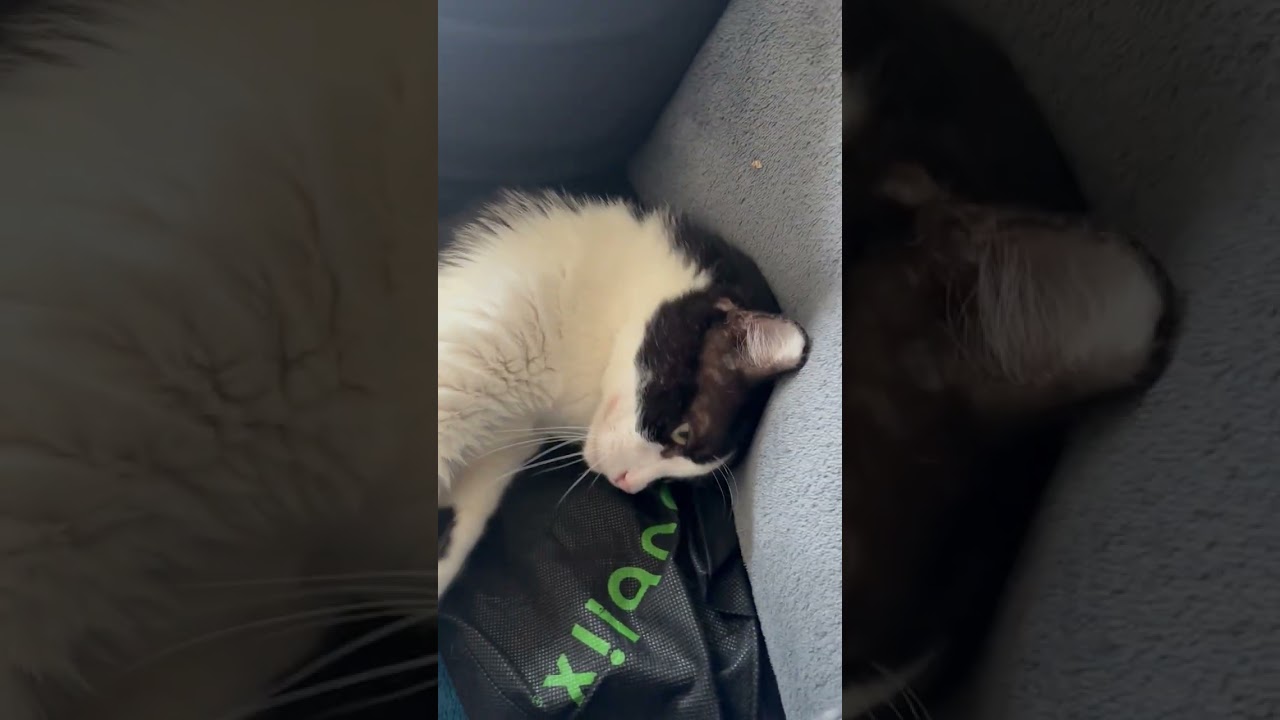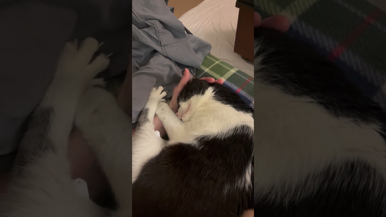 His foster says, "He’s so content when he’s around his people. He doesn’t need attention, just being near you is enough. Hero is a total sweetheart. He’s the perfect kind of lap cat, he just wants to be around his people without demanding your attention. He’s very gentle and good at communicating when he’s done with something. He’s learned very quickly what he’s not allowed to do (like jump on the stove). We even clipped his nails and he was so good and calm! Hero is just the guy for you if you’re looking for a supportive and affectionate sidekick. He seems very adaptable and chill, his litter box usage is 10/10, and he’s not destructive or mischievous. Just a happy, friendly little guy. He loves it when we kiss him on the head and he loves to cuddle with us when we sleep. When we get into bed he comes up and makes biscuits on the comforter to "tuck us in."