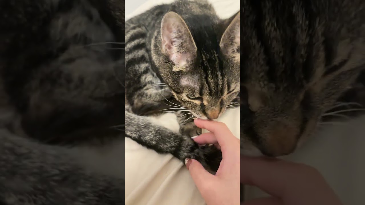 Her fosters have found her to be a total delight,"...After settling in for a day, she started coming out more, especially when I entered the room, and showed her gentle side. She began spending time lounging in my closet but would come out eagerly for pets and attention. She’s calm, affectionate, and incredibly easy to care for. She sleeps on my bed, loves head rubs, and often greets me with soft headbutts asking for more pets. She’s shown zero aggression—just a sweet, gentle, loving lady who’s happy to relax and be near her person. My favorite thing about Peanut is how gentle and easygoing she is - she radiates calm and has the sweetest, softest way of asking for affection."