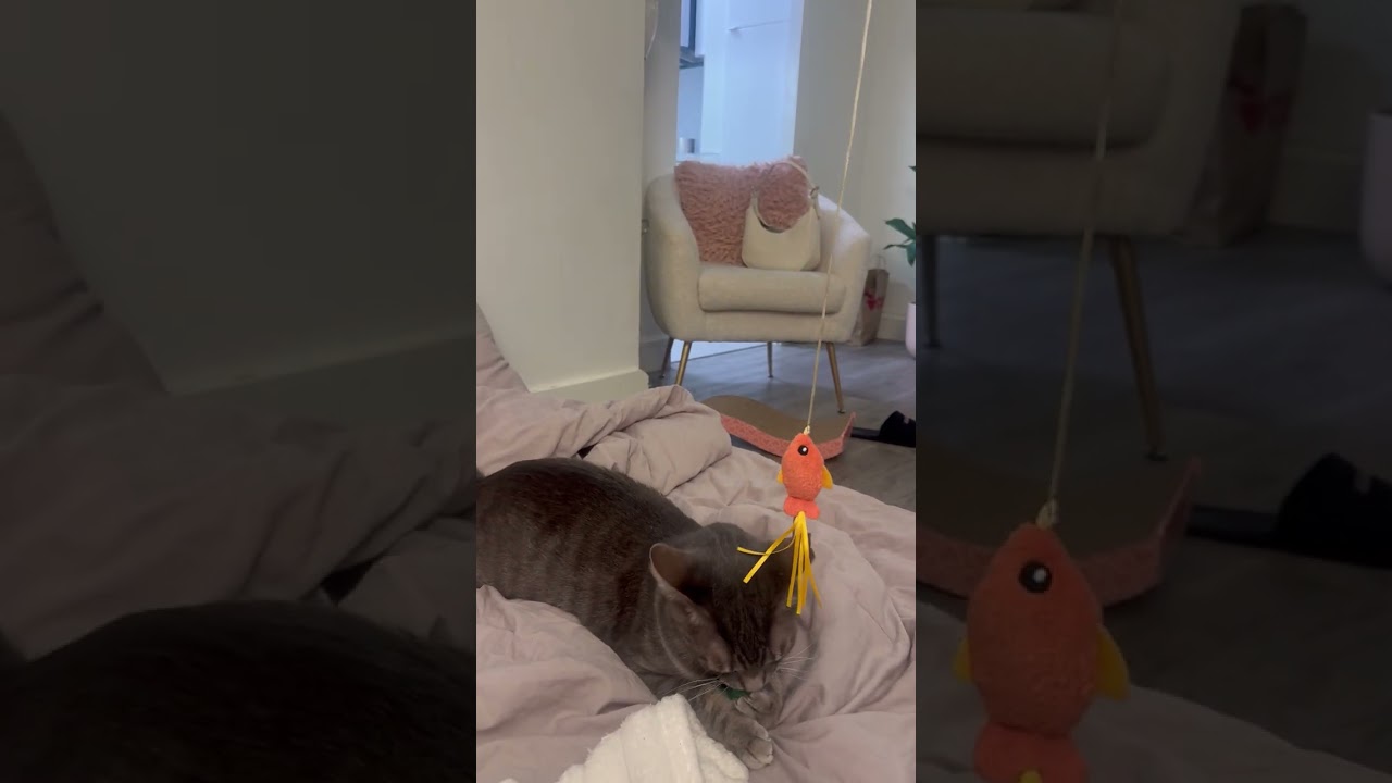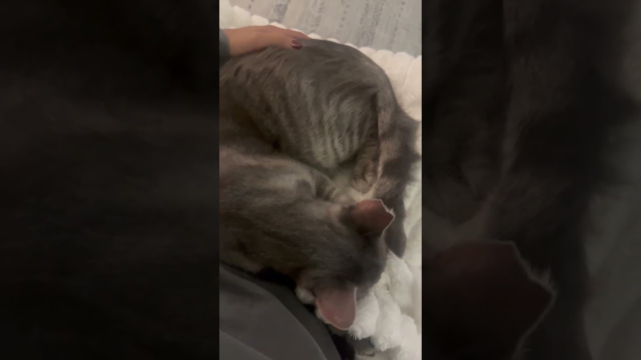 His foster says , "When we first got Grey he was very inquisitive and explored the apartment. He’s immediately very confident and was rubbing against us, wanting to be pet and purring. He ate a bit less for the first two days and then was eating and drinking like normal! He’s very cuddly, he sleeps with me in bed at night and likes to play with string toys. He’s so cuddly and affectionate, he’s truly a lap cat. He’ll fall asleep on you and it’s so magical. I’ve never met a cat I’ve liked more so quickly, anyone would be so lucky to have grey."