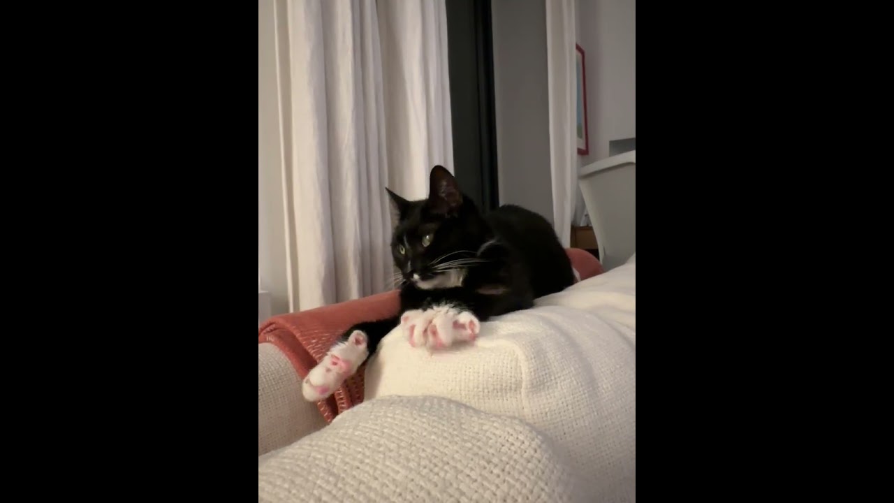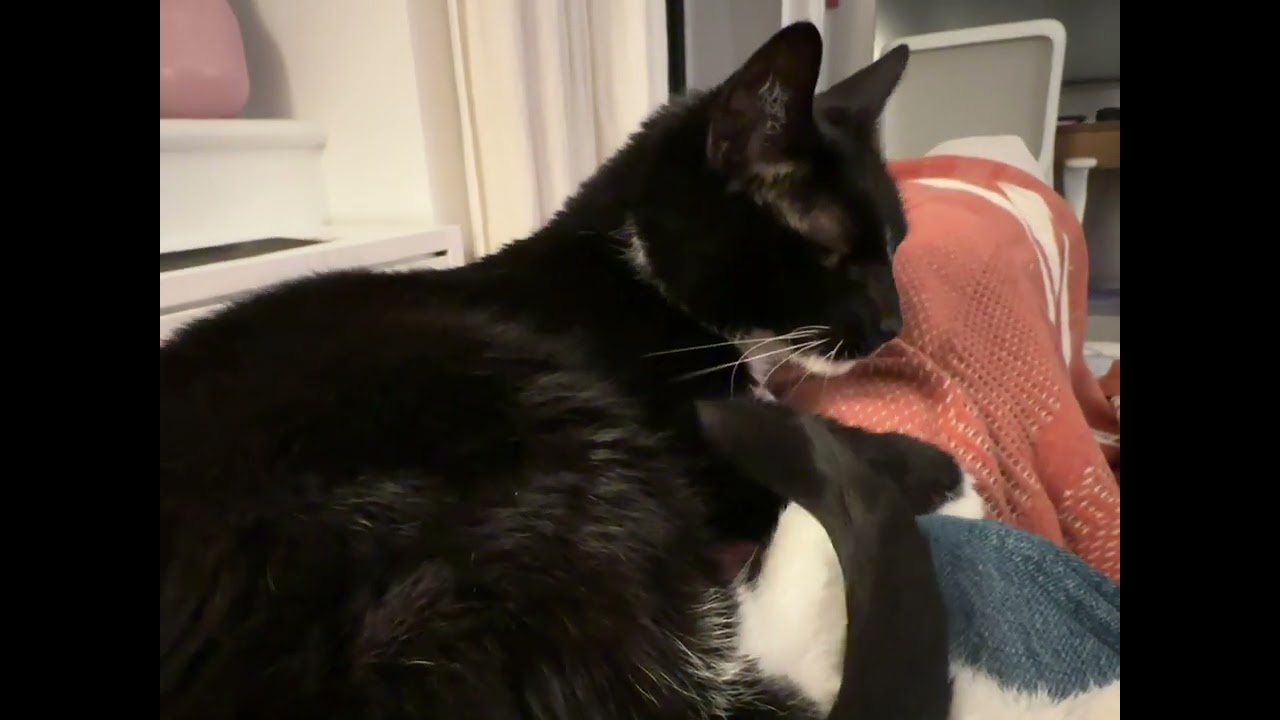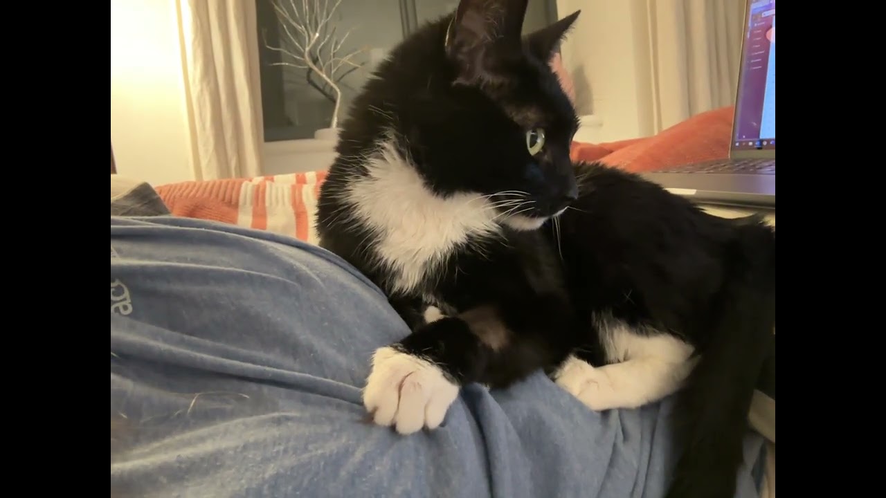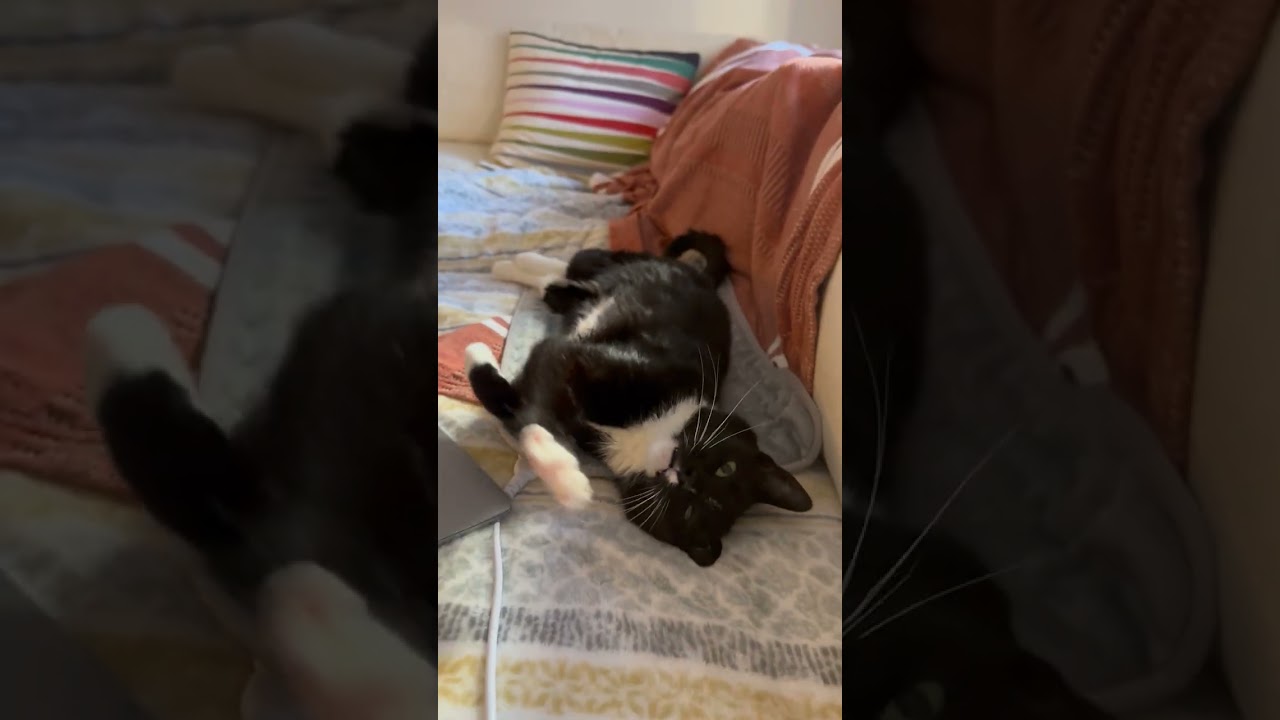 Her foster says "Shadows is a sweetheart. While she can be a touch cautious at first, her adorable personality comes out very quickly. Shadows came out of her shell within an hour of being in my home and has been happy as can be since. She does all of the quintessential cute cat things - she makes endless biscuits, including air biscuits, she'll chat back and forth with you, she's an avid flopper, she cuddles and head bunts and even gives little kisses. She is very gentle; she will sometimes play with her paws but never uses her claws. She loves to play on her own or with you. She'll happily bat around a toy by herself. She's easy, not destructive, and would be a dream cat for basically any person or family! ".