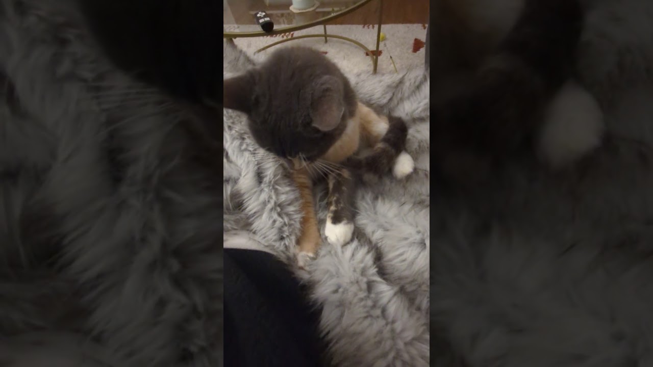 Her foster says "Snickerdoodle has blossomed beautifully during her time in foster care. From her very first day, she was eager to explore her new surroundings, quickly finding her favorite cozy nap spots and warming up to me. That same day, she was already rubbing against my legs asking for pets - and she even chose to sleep at the foot of my bed her first night. Over the next few days, Snickerdoodle became increasingly affectionate and confident. She loves to follow me around the apartment, ask politely for head scratches, and cuddle up on the couch. One of her favorite activities is kneading biscuits in your lap while soaking up attention. She balances her loving nature with a healthy appreciation for alone time, happily retreating to a quiet, comfy spot for naps when she needs it. Snickerdoodle has a playful side too! She enjoys practicing her hunting skills with a feather wand and will happily entertain herself at night with her mouse toy. She can be picked up and held, and will gently let you know when she’s ready to be put back down. She’s especially fond of Churu treats and is incredibly gentle when licking them from your hand. She's the perfect mix of affectionate, playful, and independent - a sweet companion who loves attention but also respects quiet time and would be the perfect addition to any loving home!"