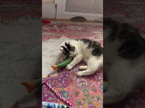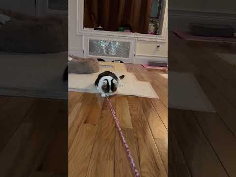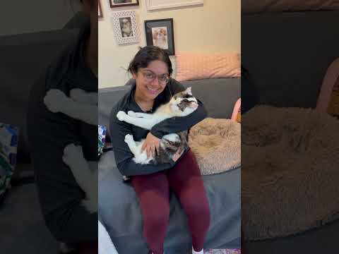 He is very sweet. His foster says "he is just the cutest most curious cat I have encountered. Dragon roll has always been a curious cat since Day 1. It took him a few days to get playful but now he is all on curious and playful . He started by giving himself a comprehensive tour of the apartment, sniffing all the corners, exploring under the beds, and peering out the windows. After a few hours in his new home, he got really comfortable. Dragon began to get cuddly and playful, showing us his belly and baking biscuits. He will greet you with so much love and and absolutely adores kisses and hugs. Friendly, gentle, timid and curious. Dragon Roll is so sweet and gentle with everyone. He is happy to be around you and be included ♥️. He LOVES watching tv with you and playing with random strings (more than actual toys). Super curious and will inspect every corner of the place! A huge FOODIE and will let you know (talkative). Not shy around people, but knows his boundaries. Will sneak in and sleep with you, but only when you’re unaware! He is so curious!! He will inspect everything - your shoes, corners, what you’re eating, your head, a controller, everything! "