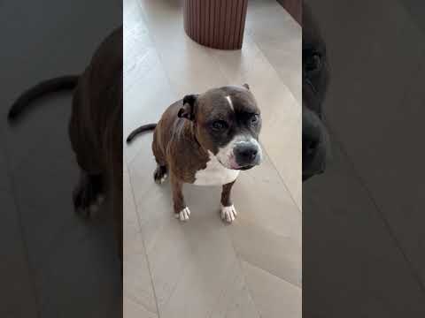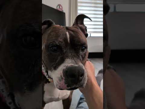 Sheba Love, an 8 1/2-year-old female weighing almost 75 lbs., just arrived and is still getting settled in, so we’re just beginning to learn who they are. Right now, everything is new—new people, new sounds, new routines—and we’re giving them time to relax, decompress, and show us their true personality at their own pace.