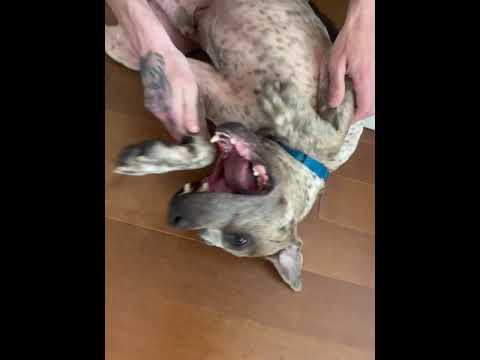 His foster says "Our first night with Willy we could already tell he was a cuddly lap dog, he wanted to get on the couch with us and sit right in our laps all night. He was a good walker from the start and has a little happy bounce when he walks that people always compliment. We got to see more of his goofy puppy like personality after 48 hours. He loves people and to give kisses, he learned sit and stay super quickly and is responsive to training. He’s a Velcro dog who will sit on the floor in the kitchen if we’re cooking or lay on the floor in the bathroom if you’re in there. We left the bathroom door open and he joined us for a shower :) He loves running water and playing with his toys. When we go on long walks he likes to end in the park to sunbathe in your lap. Sometimes he’s a slow walker and sometimes he’s full of energy, but by the time the sun sets he is in deep sleep cuddle mode. He’s such a good boy with a puppy playfulness and also an old man couch potato, it’s the perfect mix."