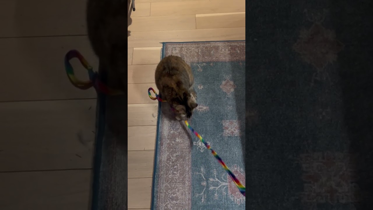 She has settled in and its such a joy to see her progress. "She’s very food motivated but takes a while to trust someone. She’s happy for you to pet her and engage her in her safe space (a pop up tent in this case). Now she’s being more outgoing. She’ll come out of her room and see what we’re doing. Especially when food is involved ! She loves a belly rub. She likes our resident cats a lot, loves sleeping on the sofa. She’s a huge fan of string toys ! She is vocal at meal time and has a tiny little meow. She’s takes a her toys and runs off with them, it’s very funny.