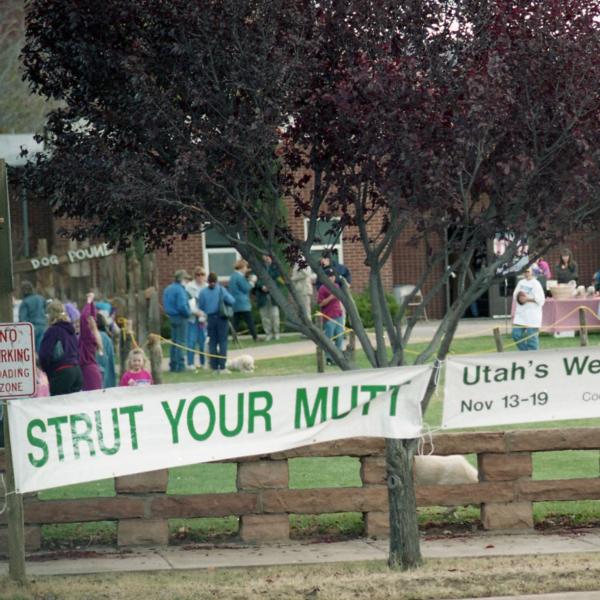 Photo gallery Strut Your Mutt chaos Strut Your Mutts began in Salt Lake City in the ’90s. It was raining hard at the first event, but everyone survived and enjoyed it anyway. And the dogs, as usual, stole the show. Return to History of Best Friends Click an image to view larger and read more.