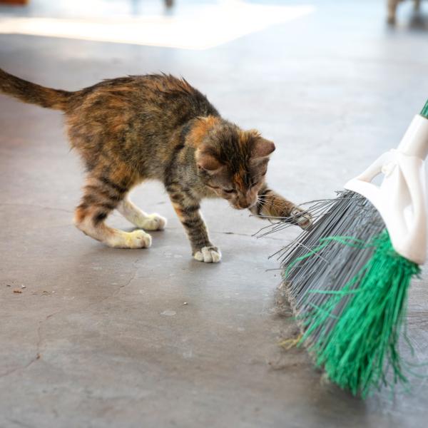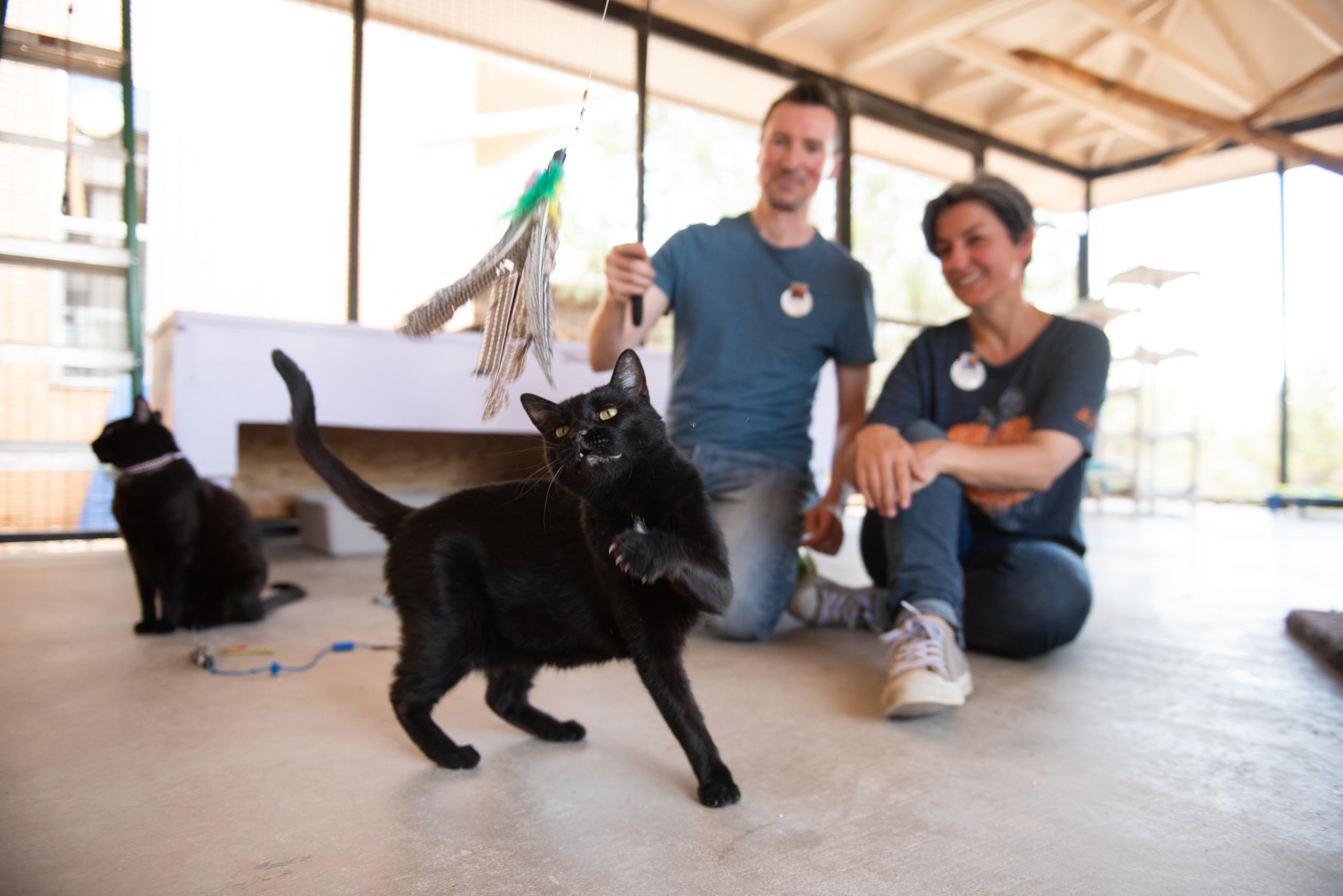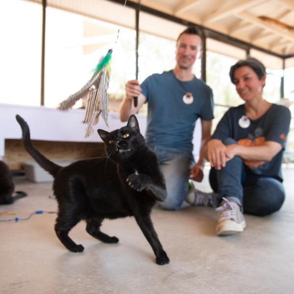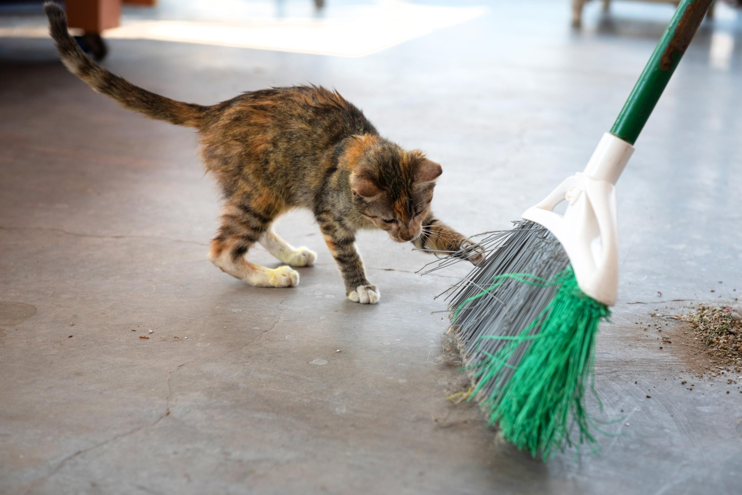 There are lots of cats at the Sanctuary who really enjoy extra love and attention, so socialization is a big part of the volunteer experience at Cat World. Many cats just appreciate your presence while you clean their living area, so don’t be surprised when a spunky kitten chases the broom while you sweep.
