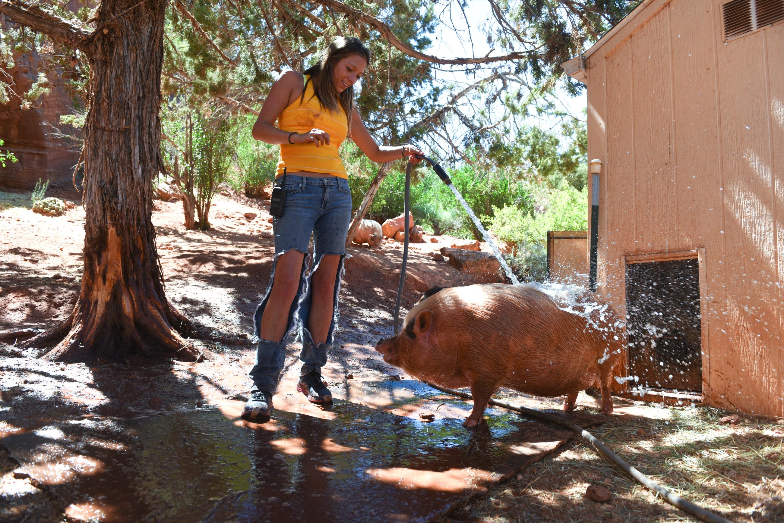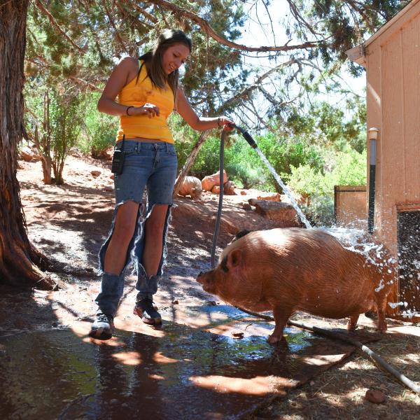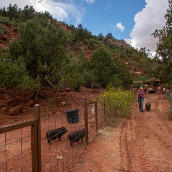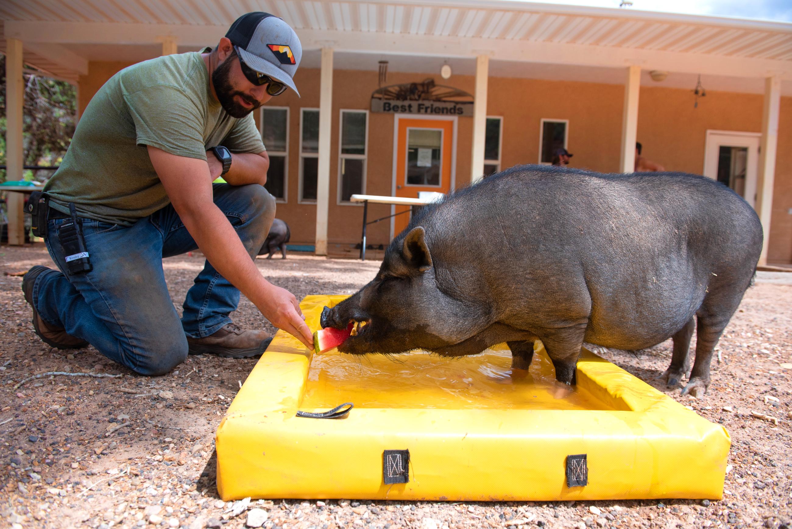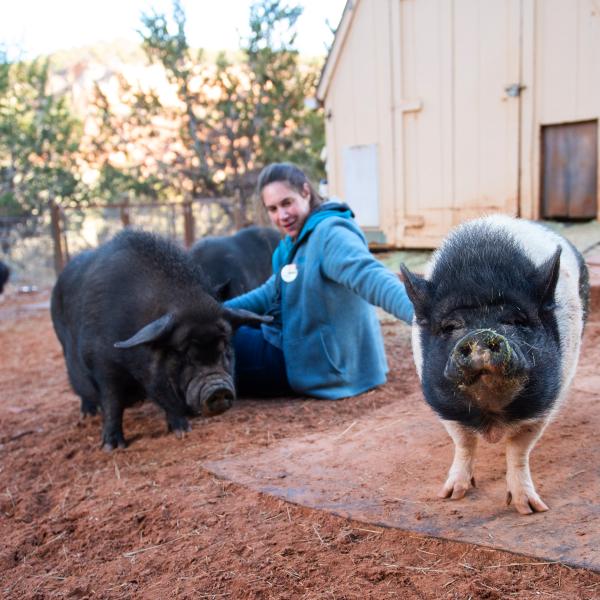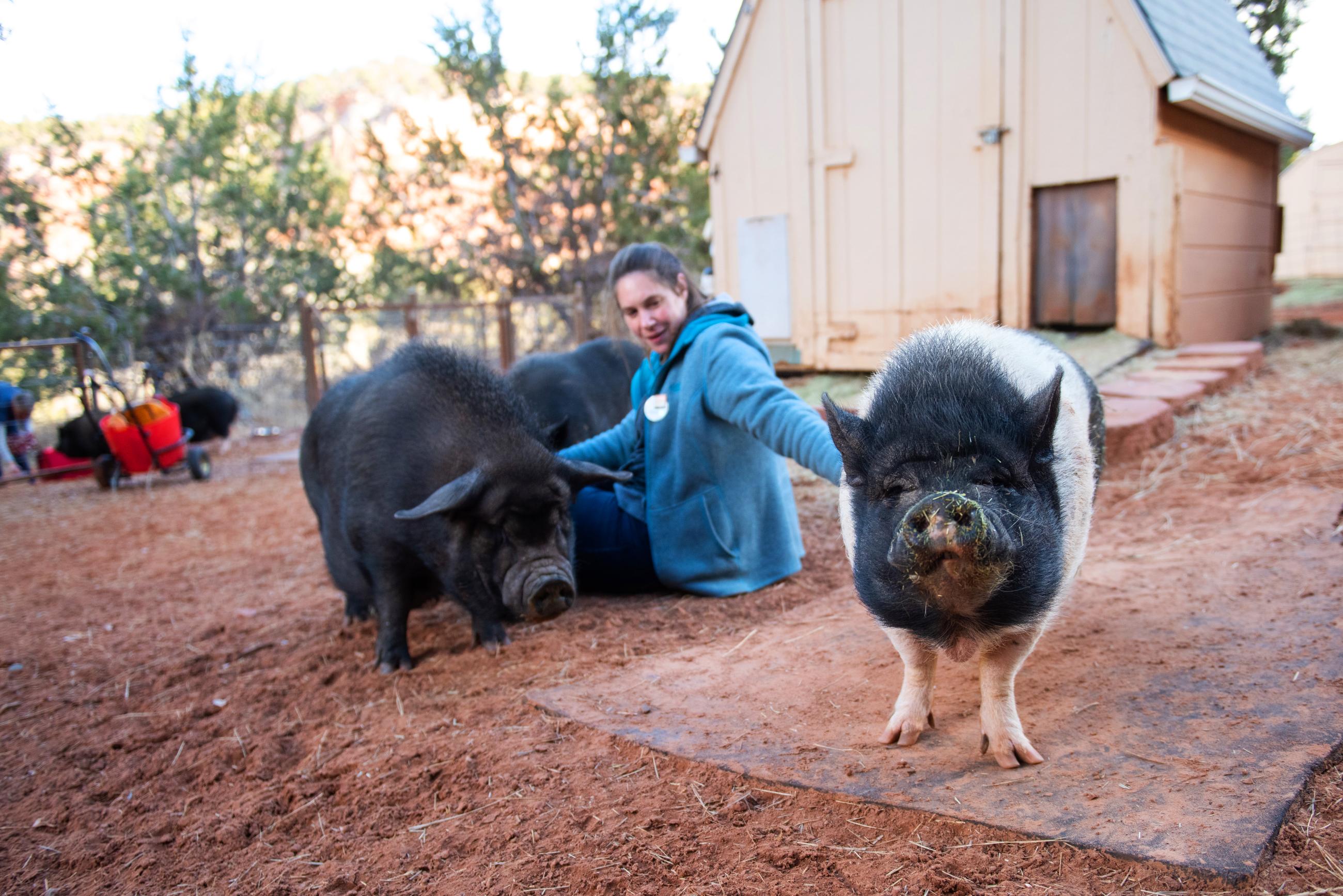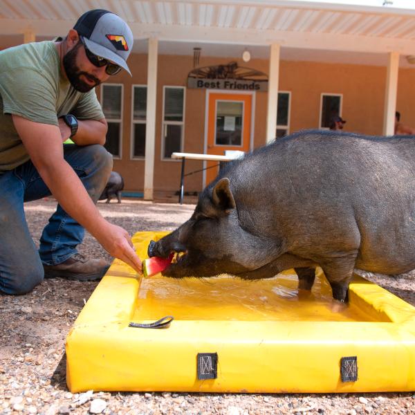 Many of the pigs who call Marshall's Piggy Paradise a home-between-homes were abandoned, neglected, hoarded, or even outlawed before they came to Best Friends. Here, they receive all they need to heal and thrive, including companionship, enrichment, and top-notch medical care.