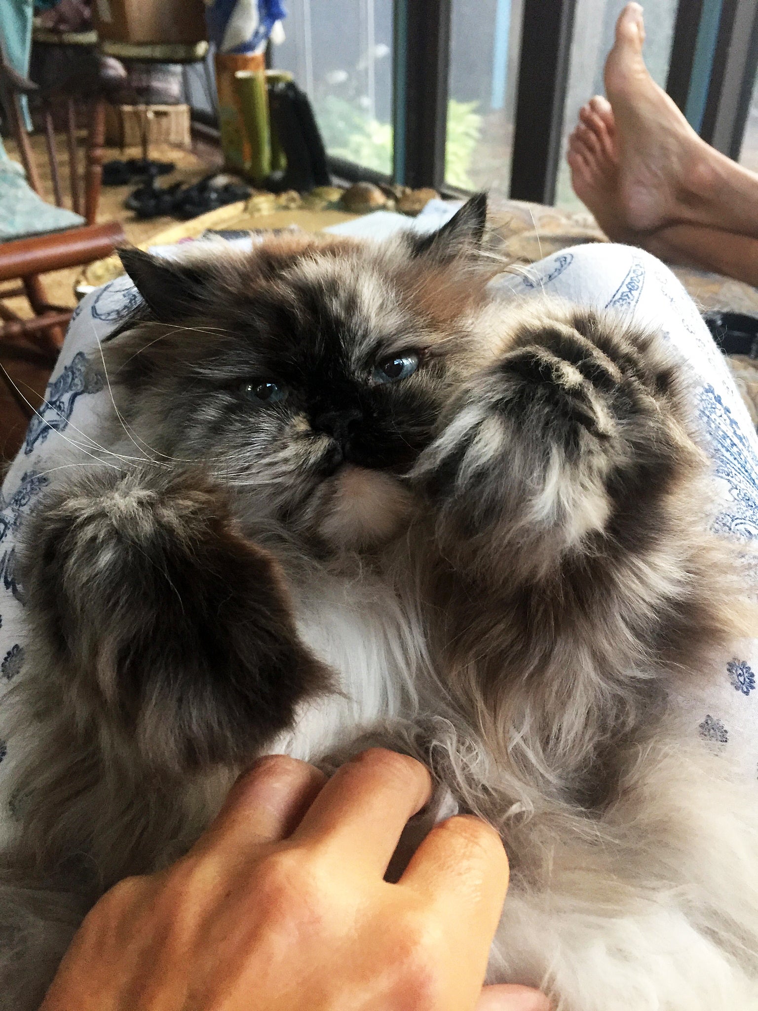 When I adopted Buck, I had no idea how lucky I was. He might be a little guy, but with Buck, our family has had big fun. He has charmed many friends, both young and slightly less young. In Austin, we had a house of cat lovers and Buck was Mr. Congeniality, with six ladies eating out of his paw. Our building manager describes him as “so cute and friendly.” She even asked if she could eat lunch in our apartment sometimes just so she could visit Buck.