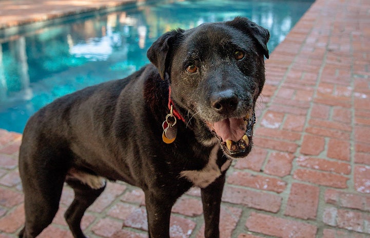 While they have shared their lives with about two dozen of these special animals, today it’s Faye and Frank who warm the family hearth. Faye is a nearly blind senior dog who had already lived in several homes before coming to her final resting stop with Susan and Peter. Frank, a 14-year-old dog with a skin condition, is the newest addition to the family. For nearly six months, Frank had been with LabsAndFriends.org, an NKLA Coalition partner, and then was transferred to Best Friends’ No-Kill Los Angeles (NKLA) Pet Adoption Center. When Susan saw his adoption profile online and read about Frank’s advanced age and his skin issue, which made him look a little rough around the edges, she knew Frank was the dog for them.