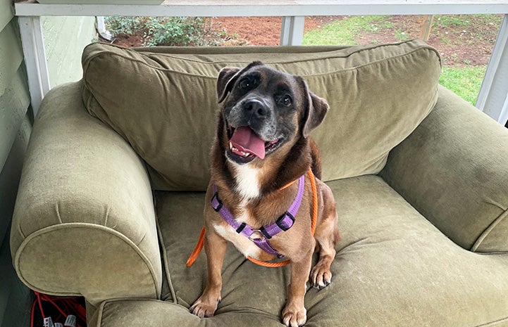 “As soon as I knew I'd be working from home during this pandemic, I contacted the foster team to see who would be available,” says Marisa. “It makes me happy to give Roadrunner some rest and a loving home while he waits for his forever home.”