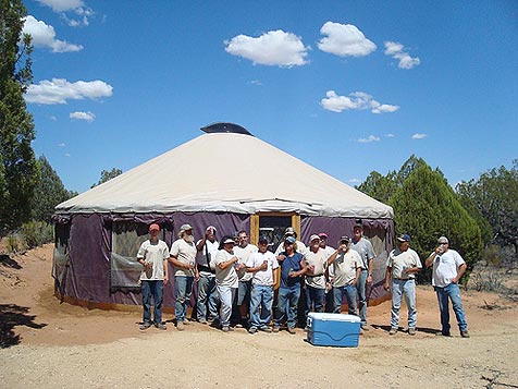 Back at the sanctuary, a maintenance crew is retrofitting one of the octagons in Dogtown to provide living quarters. Octagons provide indoor shelter and feeding areas and have dog runs fanning out from the building. Inside, caregivers can see all the dogs at a glance and keep an eye on their activities.