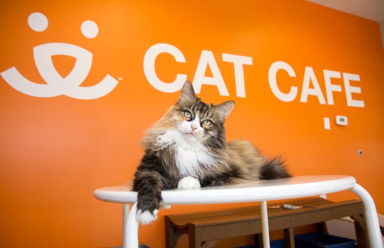 "The many cat adoptions are one of the greatest things about the center,” says Best Friends marketing specialist Jaimi Haig. “Our cat cafés (free-roaming cat rooms) let these cats be themselves so their personalities show. This is a much more relaxed and calming environment for them, and this particularly helps those ‘long-timers’ who have been in the shelter for quite a while."