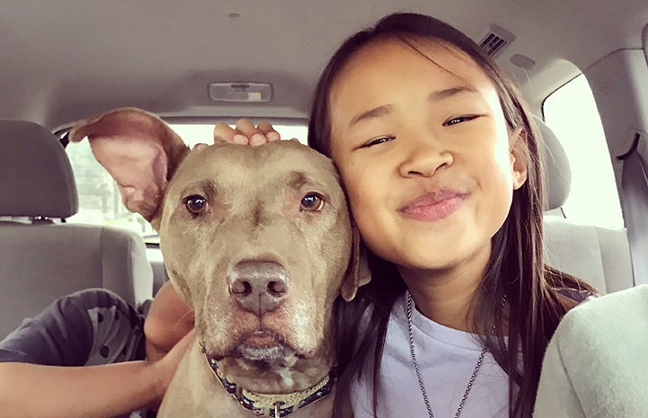 To help keep Kiwi on the path of healing, the staff asked for foster volunteers. Rachel and Caleb stepped up and fell in love with Kiwi on the ride home as she laid her head on Caleb’s lap.