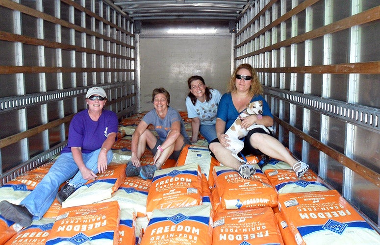 Having recently signed up to be a Best Friends' No More Homeless Pets Network partner, Faulkner County SPCA received a windfall of pet food when our supporter Blue Buffalo, a premium pet food company with a heart of gold, had tons of food they wanted to donate to help shelters and rescue groups in need. Michelle Logan, the No More Homeless Pets Network specialist who knew of the situation at the Faulkner County SPCA, reached out to Lydia, and with a bit of networking, 70,000 pounds of food were on their way to Conway.