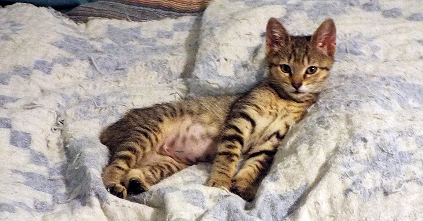 That’s exactly what happened to a visiting Pennsylvania family that followed the meowing sound and found the kitten trapped in their car’s wheel well. They rescued the frightened baby cat, but fearing that she’d been injured, they brought her in for emergency treatment at the Best Friends Animal Clinic.