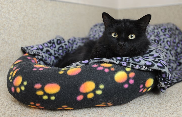 River didn’t get her name from a rushing body of water, but unfortunate circumstances left her quite adrift and far downstream from where she needed to be. The five-year-old cat was hit by a car on River Road, located in a community not far from the Sanctuary. A good Samaritan found the injured cat and called a local rescuer who helped get her to Best Friends. When she arrived, poor River was pretty roughed up.