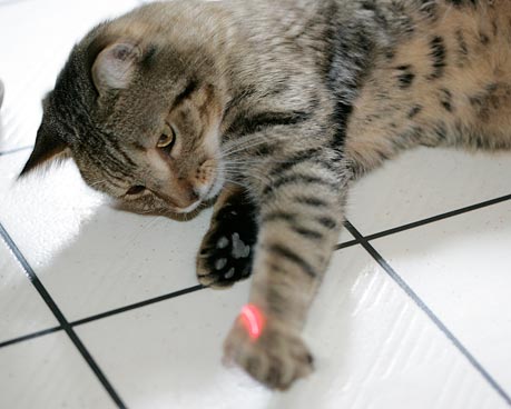 Two cats, Lori and Dimitri, may have chronic upper respiratory infections (URIs), but their chronic sniffles doesn't stop them from disco dancing. Best Friends cat staff discovered an activity neither of these cats can get enough of – chasing the beam of a laser light (something they can run at forever and never catch). It resembles a pen light, and can be purchased at many pet stores. And it could keep these two goofy siblings dancing with delight for hours on end!