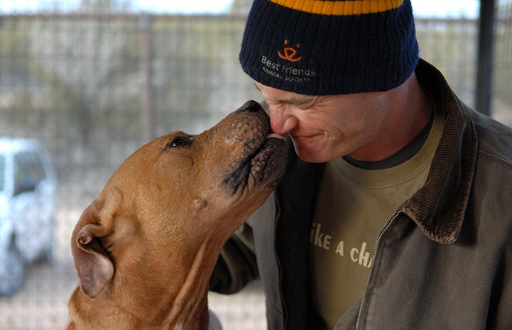 “When I first heard that the Vicktory dogs were coming to Best Friends, I had been doing adoptions here for about 10 years. But finding homes for these dogs was going to be a very different-than-usual process. There were court-ordered processes in place, so there were a lot more hoops that potential adopters had to jump through: background checks, home insurance company clearances, home visits and lining up behavioral consultants. And if potential adopters had other dogs, they would have to bring them to Kanab, Utah, to meet the dog they hoped to adopt.”