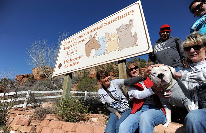 When Churchill the dog strolled into the Welcome Center on his recent visit to Best Friends, a dozen people were waiting to greet him, and a signed welcome banner hung over the front desk. It was a special pilgrimage for this special-needs dog, a chance for him to experience a sense of peace and belonging in a place where thousands of animals just like him have taken refuge. And, somehow, the stars aligned for Churchill, as they have for so many others.