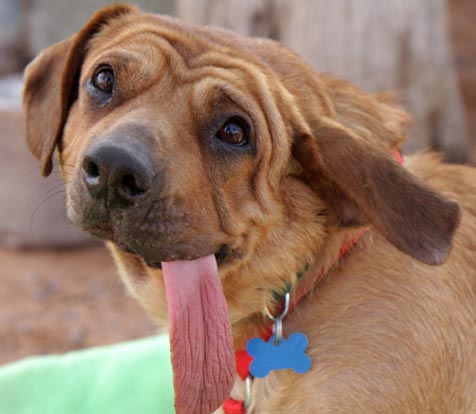 Poor Dara! If it wasn’t for bad luck, she’d have no luck at all. Maybe you remember Dara the dog. She’s the darling girl who came to Best Friends not long ago from a rescue in Alabama. Back in Alabama, she tried long and hard to find a home, but nobody could get past her unique perma-grin. She’s missing part of her lower jaw and can’t seem to keep her tongue in her mouth. And although Dara practically does back-flips of joy when anybody greets her, nobody ever picked her for a home.