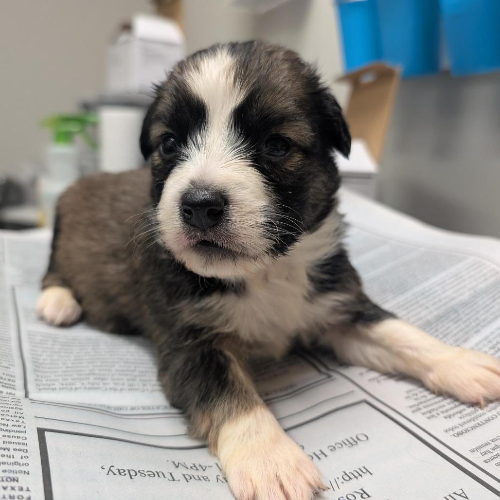 Daisy was found as a stray and brought to a Houston animal shelter. Although practically a puppy herself, she was due to give birth any day. Soon, she delivered six puppies — a beautiful bouquet of black, brown, and white. Unfortunately, the whole family came down with upper respiratory infections, and one of the puppies passed away. Although they were receiving wonderful care at the shelter, it wasn’t the ideal environment for a nursing mom and fragile newborn pups.