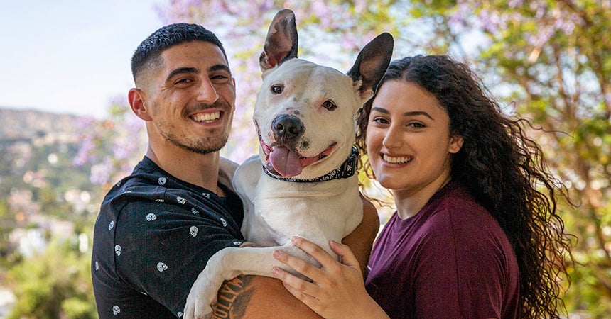 What’s one way you can tell a dog is loved? Perhaps it’s when he goes by several nicknames. For example, Boo answers to Booman, Booberry or Booberino. It’s a far cry from the day a white pit bull terrier — with no name at all — was found wandering around downtown and bought in to a Los Angeles Animal Services (LAAS) shelter.
