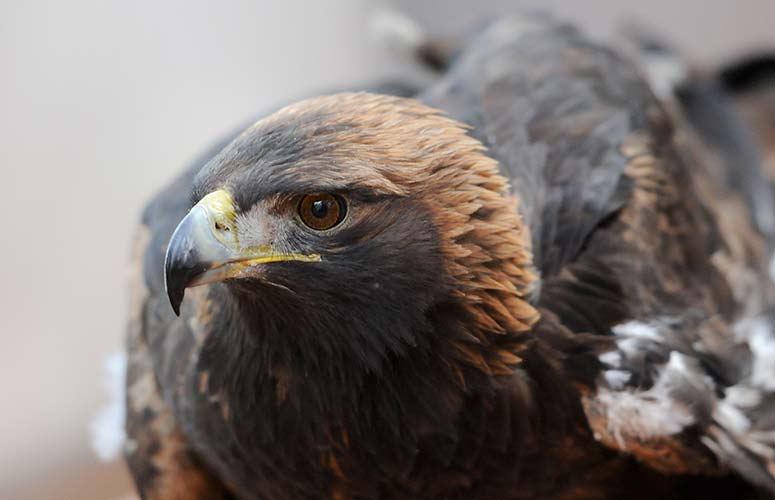 Because golden eagles are scavengers, they can often be found on or near roads, looking for road kill. So please don't speed, keep your eyes open for eagles and other wildlife, and keep the phone number of a licensed wildlife rehabilitator handy.