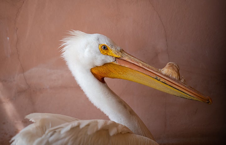 Keith Day, the regional officer and sensitive species specialist at the Utah Department of Natural Resources, picked up the bird, placed him in a carrier in his truck and called Best Friends. Soon, Wren Blossfeld, licensed wildlife rehabilitator and head rehabilitator at Wild Friends, was on her way to meet him and the pelican just north of the Sanctuary.