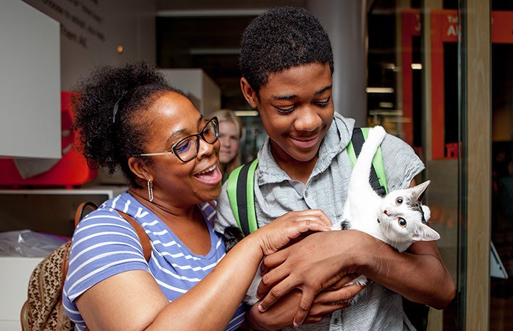When a son and his 91-year-old mom recently stopped by the Best Friends Lifesaving Center in Utah in search of a cat who loves people, they fell in love with Popcorn. As you can see, the feeling was mutual.