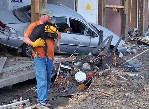 The team spent the weekend doing what Rich calls "hard-core, ground-and-pound search and rescue, going door to door," looking for pets left behind.