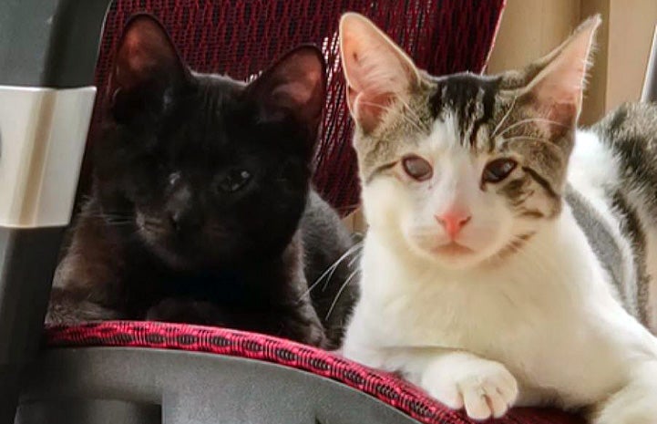 Life is always easier when you have a friend. Two kittens figured that out after losing all or most of their eyesight when they were just a few weeks old. They arrived at Best Friends in New York with terrible eye infections, and even though veterinarians prescribed antibiotic eye drops right away, the damage had already been done.