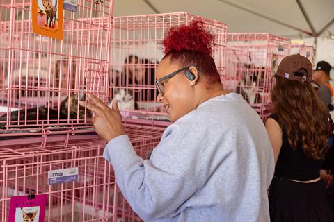 It wouldn’t be L.A. without some celebrity sightings. Dozens of famous Angelenos came out to support pet adoption, including Katherine Schwarzenegger Pratt. The author and lifestyle influencer read and signed copies of her new children’s book, Kat and Brandy, which shows the healing power of animals. Matt Nelson, founder of the popular social media account WeRateDogs, rated adoptable dogs live on stage. (Spoiler alert: None of the pups got less than a perfect score.) And in a sweet moment, actor Kumail Nanjiani — who recently said goodbye to his beloved senior cat, Bagel — adopted a new feline into his family.