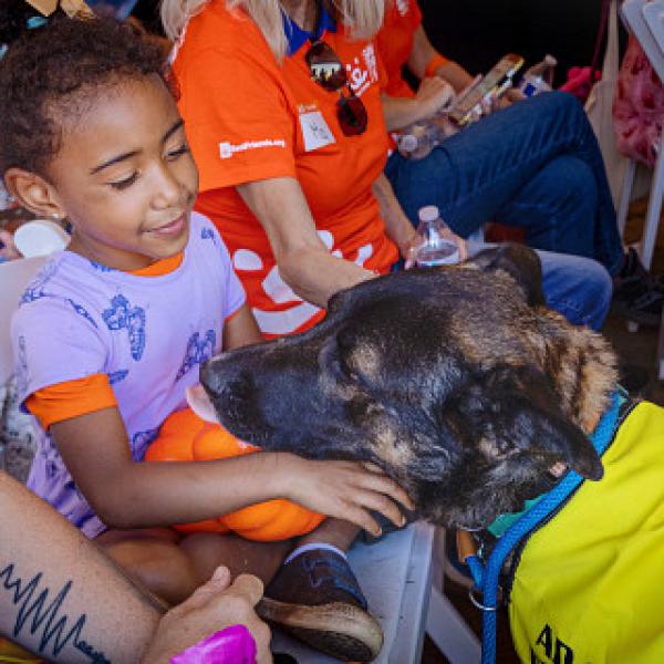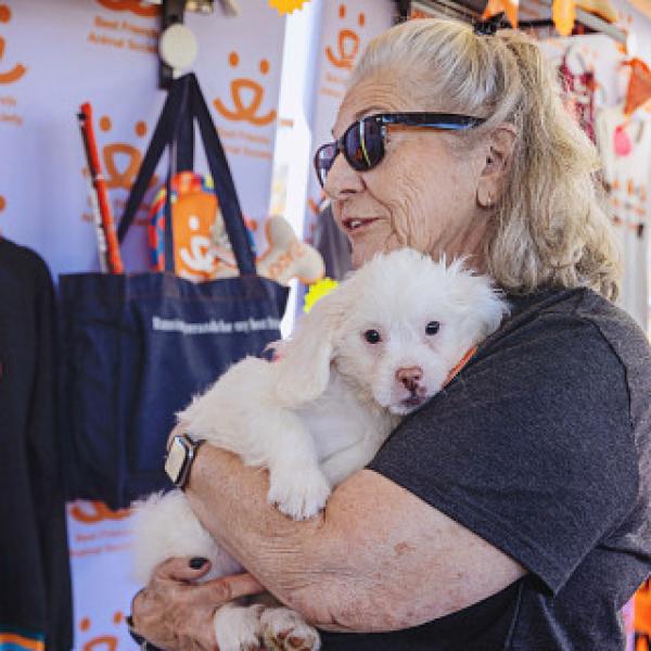 Best Friends has been hosting super adoption events in L.A. and other cities for more than 25 years as one way to support shelters reaching no-kill. Besides the opportunity to meet hundreds of adoptable pets in one place, visitors enjoyed a full-on festival, complete with food trucks, vendor and exhibitor booths, and giveaways. The event also offered hands-on activities, including DIY pet toys, bandana decorating, and paw printing for newly adopted pets. Because the weekend overlapped with Día de los Muertos, guests were invited to honor a pet who passed away by adding their name to the ofrenda (altar).