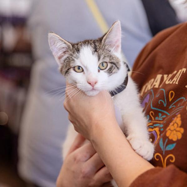 The energy at a super adoption event is unmatched. When the gates opened, staff and volunteers lined the entryway, clapping and cheering as the first crowds poured in. Before long, visitors were snuggling up with cats, dogs, and even guinea pigs from 21 participating animal shelters and rescue groups. Over two days, more than 4,200 people attended.