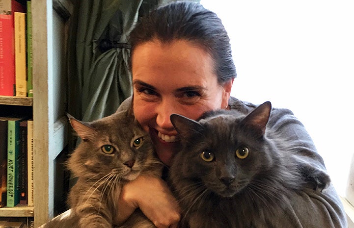 Since the day we brought him home, friends had been following Elroy’s progress, and when he was finally ready for adoption, it didn’t take long to find the right match. Laura Gatewood and Steven Waller had recently adopted another fluffy, gray, chonky cat from Best Friends named William Grayson, and they had since determined that he needed a playmate.