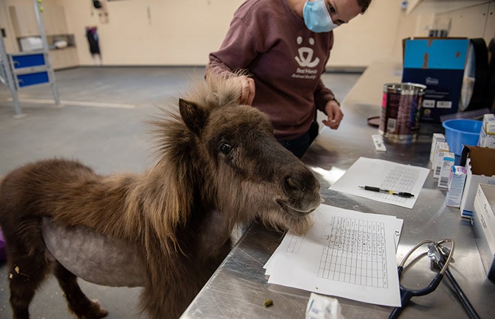 Daisy was in major trouble by the time she came to Best Friends Animal Sanctuary. The three-year-old miniature horse had a bad case of diarrhea that quickly unfolded into something much more serious and complicated. She was lethargic and barely hanging on, without any diagnosis as to what was wrong.