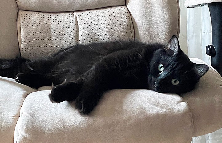 Judging from the purrs (that are so loud they’re distracting, says Doug), Steak is a very happy cat. Now, it’s Diane who looks forward to updates about him.
