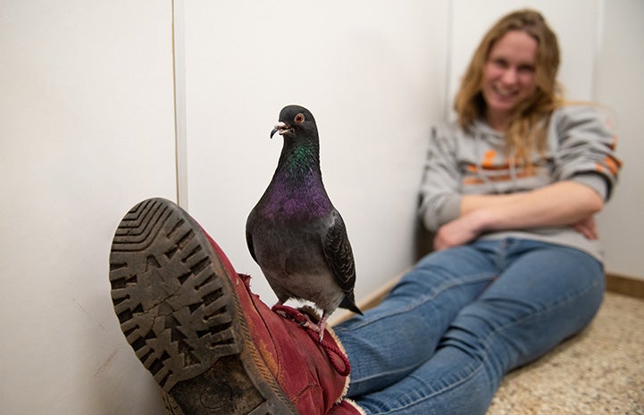 Pigeons are incredibly smart, one of the few animals believed to recognize themselves in mirrors. And Magma is no exception. She’s curious about the world around her and is always ready to learn a new game.