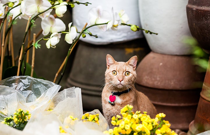 Look beyond the exotic house plants, flowers, succulents and palm trees at Holiday Flower & Plant, Inc. in New York City’s flower district, and you’ll soon spot Tom, the store’s resident cat. By day, Tom can be found helping sales associates on the first floor, where he likes to greet customers. And if he’s not there, you can find him with Sari in the shop’s office, where he likes to nap on a shelf.