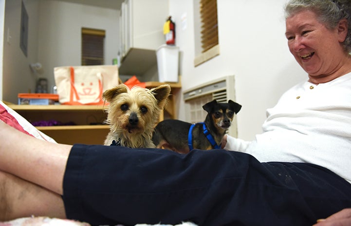 By the time Cathy spotted her, Samantha — a Yorkshire terrier or “Yorkie” — had been at Best Friends for about 10 months. She was eight years old but was only just beginning to understand what it could mean to be a companion animal. Before coming to the Sanctuary, she’d spent her entire life in a puppy mill, having litter after litter of puppies. Once she was rescued, the world opened up to her. It was exciting, but also scary.