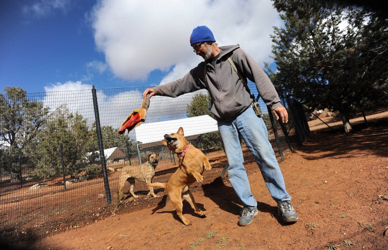 Over eight years after Best Friends led a massive, nine-month rescue effort from its temporary headquarters in Tylertown, Mississippi, animals who survived Hurricane Katrina still receive help and care at the Sanctuary. After the disaster, Best Friends took in 145 dogs (including those who went to other rescues before coming to the Sanctuary). There are 16 who remain at the Sanctuary, and although many still bear physical and emotional scars, they've made a great deal of progress. As Dogtown caregivers help them overcome issues, their quality of life has vastly improved, and they've become more comfortable with the world - and thus more adoptable. Their caregivers, including Paul Lindley and Kathy Moore, have formed strong and lasting bonds with them through long-term care.