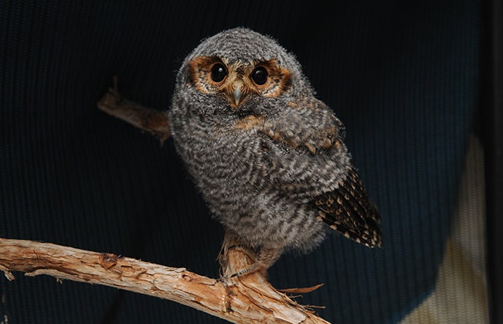 As a flammulated owl, he is one of 10 species of owls native to the area and is similar in size to a northern pygmy owl. Like all owls of his species, when full grown he’ll be just six inches long, with a 14-inch wingspan.