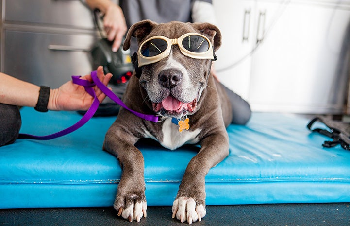 Sheena had regular physical therapy that included balancing and stretching her legs. She received laser therapy with a deep-penetrating cold laser to reduce inflammation and relieve pain. And she spent a lot of time doggy-paddling around in the pool to build up muscle in her back legs in a way that didn’t put pressure on her joints.