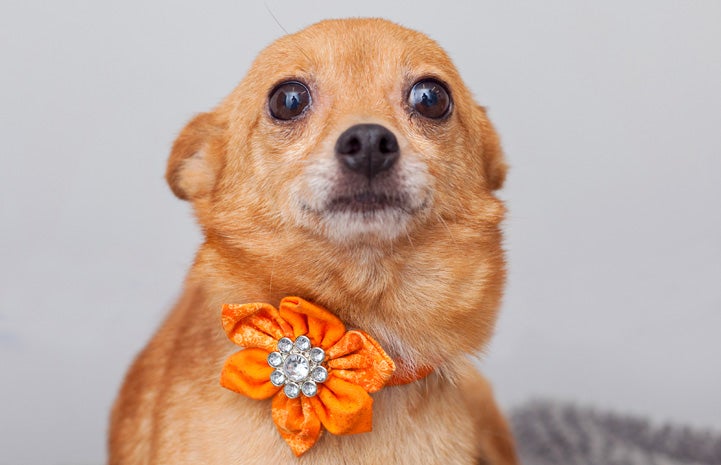 When Foxi arrives at the senior rehabilitation center each Tuesday in Burbank, California, she immediately turns heads. It may be because the little golden-coated Chihuahua mix service dog sports a different miniature outfit each time, but it’s more likely that people are eagerly awaiting their turn to cuddle one of their most favorite visitors. Foxi takes her popularity just like she does everything else — totally in stride.