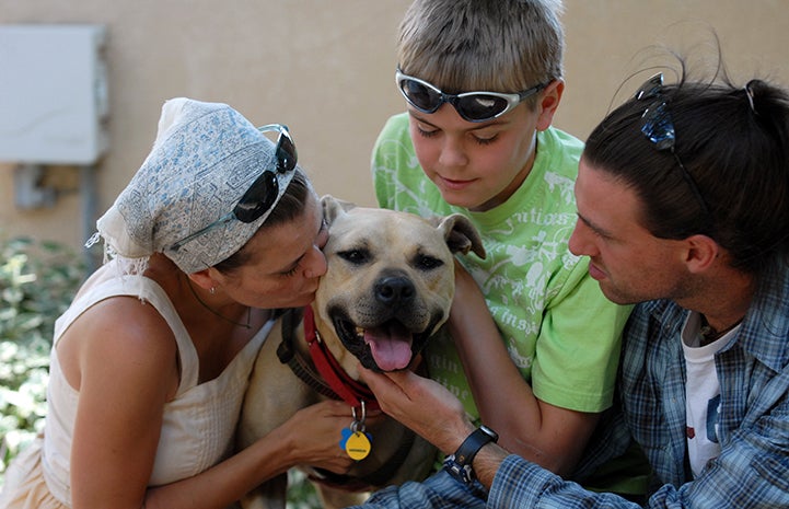Handsome Dan was one of the 22 canine survivors of Michael Vick’s dogfighting operation who came to Best Friends Animal Sanctuary in January 2008. They arrived at the Sanctuary following eight months of kenneling while their fate, along with that of the rest of the dogs rescued from Vick’s Virginia property, was being debated. Should they be summarily executed because of their involuntary association with dogfighting or should they be assessed as individuals and given a chance at a new life? A federal judge ruled that the dogs should be given a chance. The story of the Vicktory dogs is beautifully told in the award-winning documentary The Champions, in which Dan and his adoptive family are featured as one of the follow-up stories.