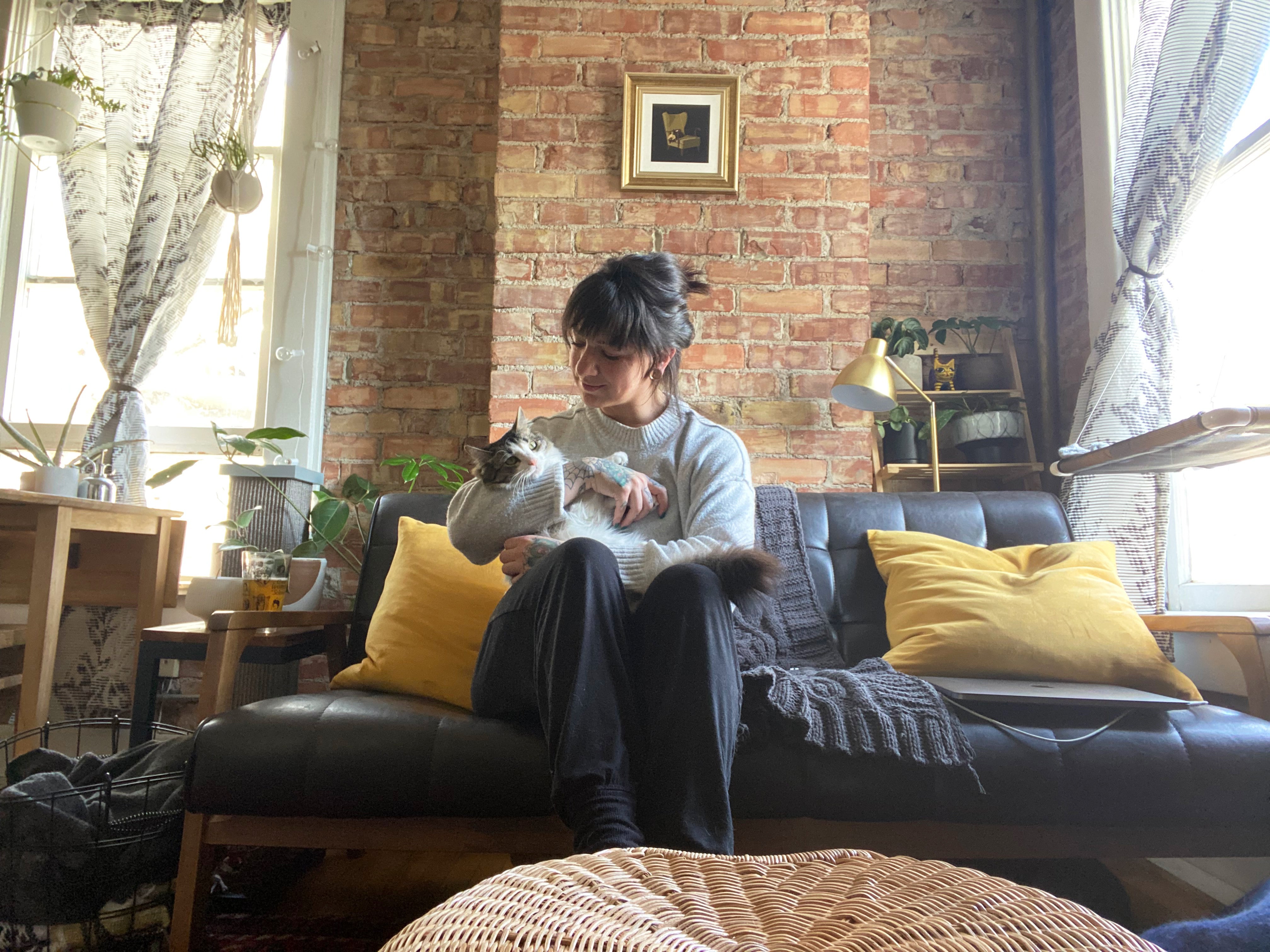 Squeegee also enjoys hiking with Paula and gets on so well with the resident cats that Paula refers to them as “the total cat gang.” Today as an adult, Squeegee is still a petite guy at only seven pounds. Paula calls him a “permanent kitten” due to his size and friendly, playful personality. Indeed, he seems larger than life, like a celebrity, even though he’s on the smaller size.